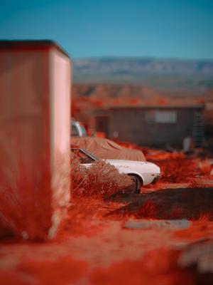 Photo taken in the town of Wikieup Arizona, I used a tilt shift effect to create a focus point on the buried car.